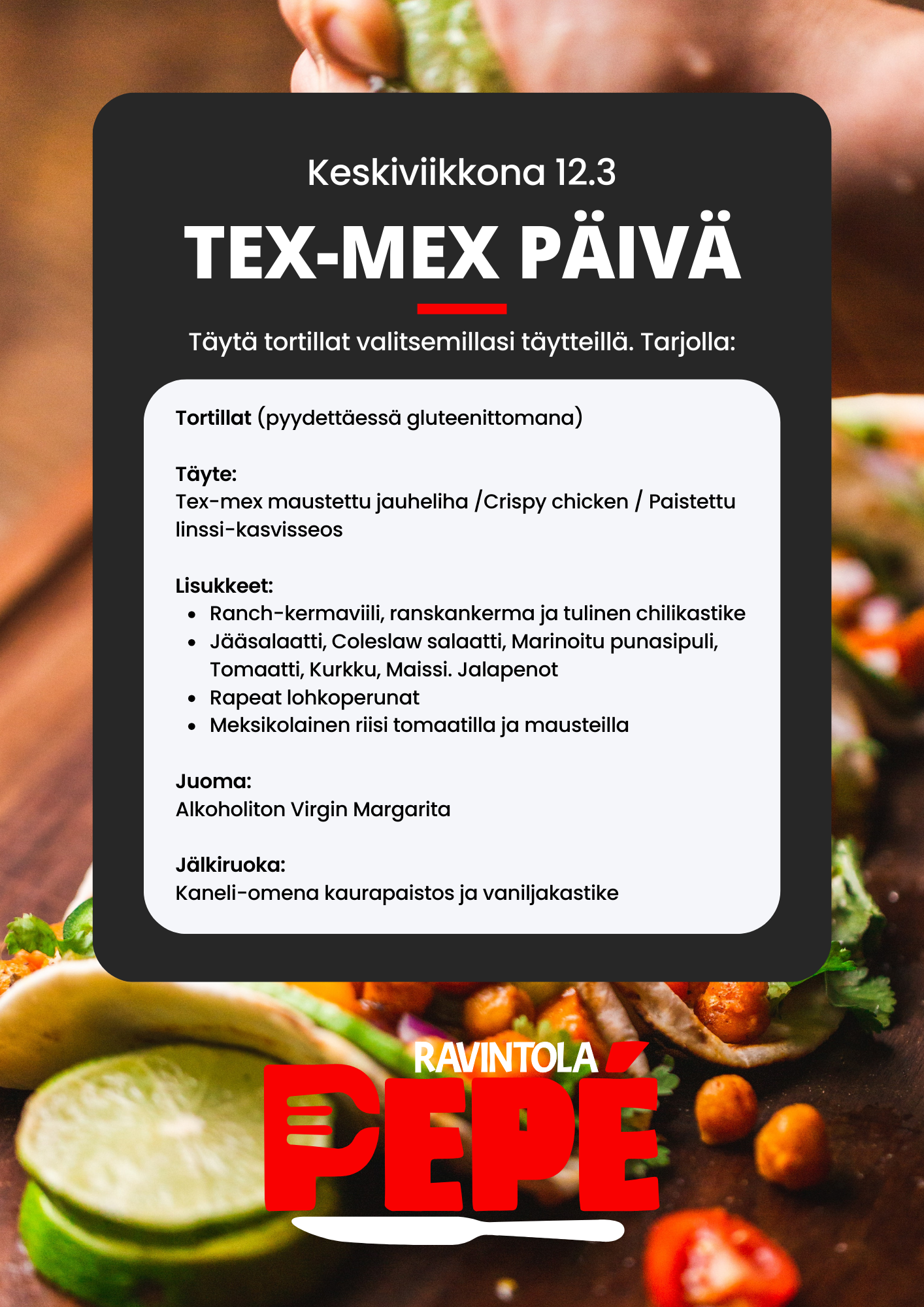 đ„đź Tex-Mex PĂ€ivĂ€ PepessĂ€ Ke 12.3.! đźđ„